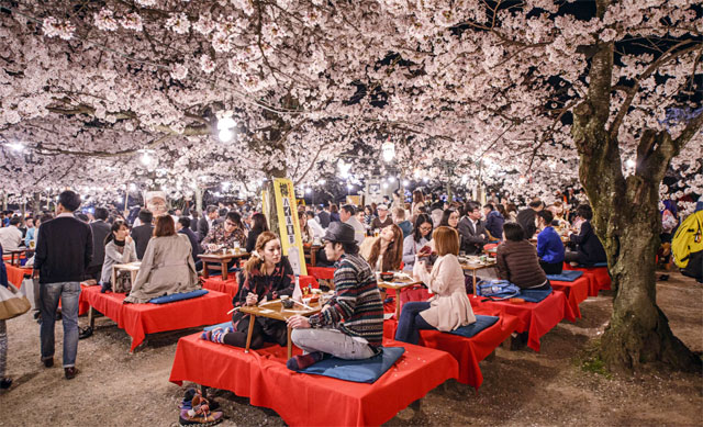 О-ханами подразумевает не только прогулки в парках, но и пикники под цветущими деревьями. Причем в самых популярных парках место для пикника стоит занять заранее.