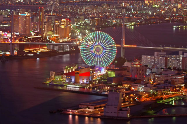 112-метровое колесо позволяет осмотреть все окрестности, в том числе искусственно созданную гору на реке Йодогава. На колесе всегда можно узнать прогноз погоды на завтра. Оранжевые огни означают, что будет солнечно, зеленые указывают на облачность, а синие предсказывают дождь. Колесо открыто с 10 утра до 22 часов.