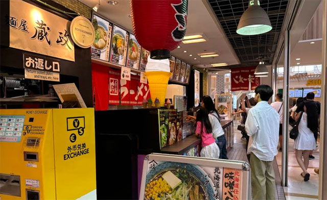 Между колесом обозрения и Аквариумом сосредоточены все лучшие магазины района. Сюда стекаются туристы, которые хотят приобрести сувениры, одежду и посетить рестораны японской кухни. Кроме того, на рынке также находится тематический фуд-корт Naniwa, где продаются популярные закуски «такояки» и «окономияки». Это самое удобное место, чтобы подкрепиться для дальнейшей прогулки.
